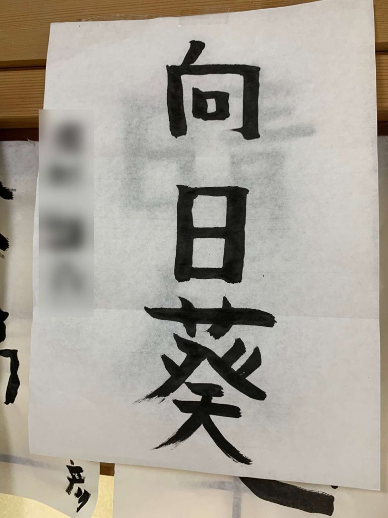 本日はバイステック青根さんにてテーマが『花』の書道のお時間がありました。皆さん新聞紙で練習を重ね、どんどん上達していきます。後で眺めるとそれぞれに味があってとても和みます。少しだけのアドバイスの後、気持ちを込めて書いていました。見てるだけでホントに楽しい…それでは作品です。御覧下さい!👏👏👏