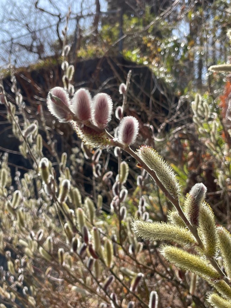 ネコヤナギかな? 青根でワンコと散歩中…